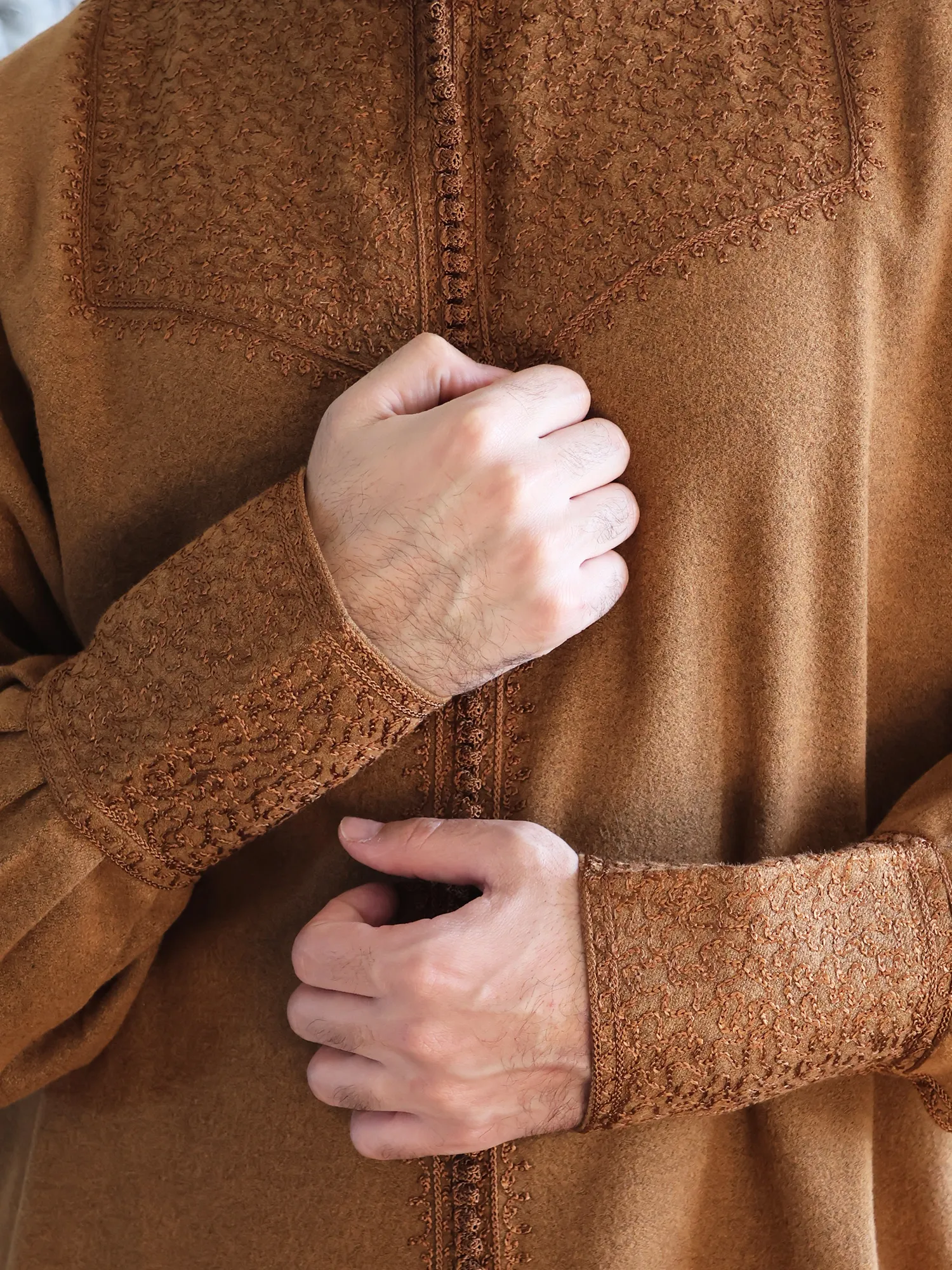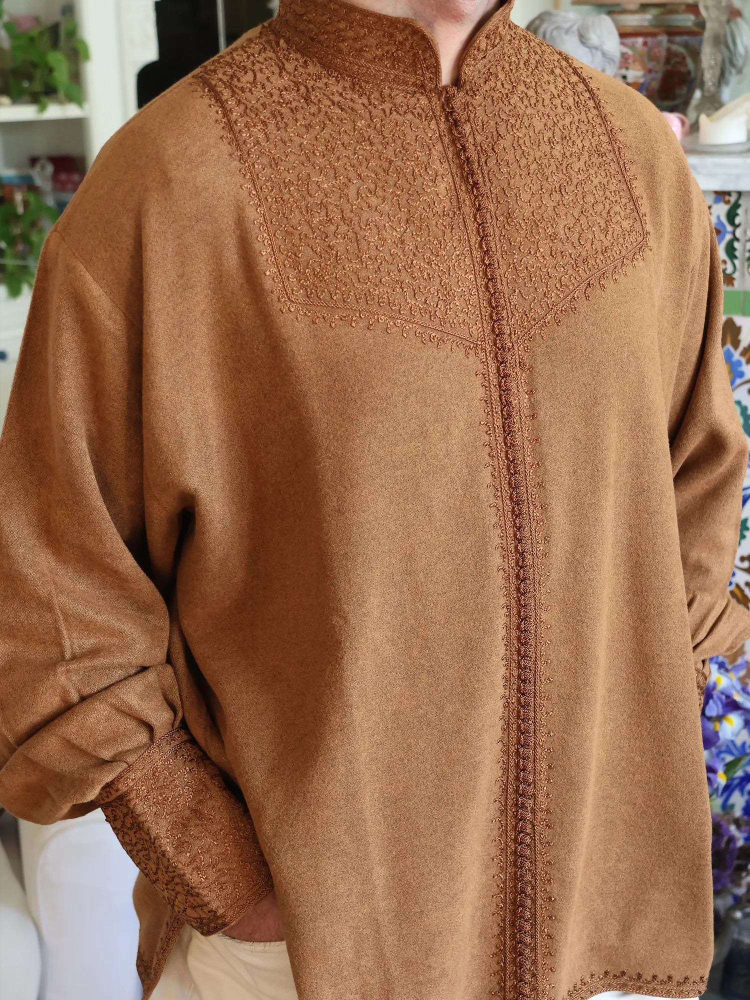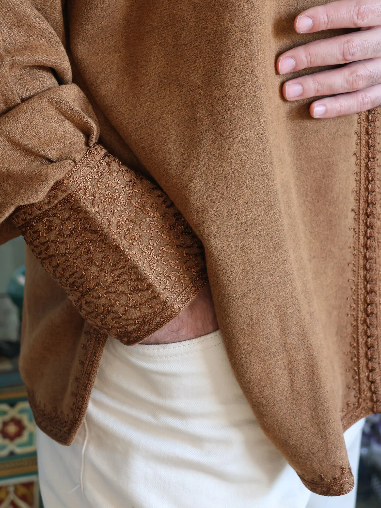 This design marks the first signature of SHAMS & KAMAR. Conceived as a timeless form, it reflects a dialogue between memory and contemporary expression. Crafted from carefully sourced Moroccan wool, it embodies continuity through fabric, proportion, and restraint.